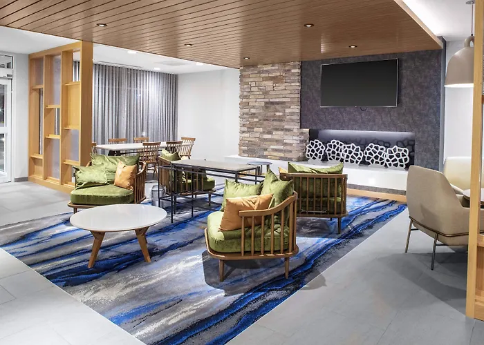 Las habitaciones del Fairfield Inn & Suites están diseñadas para tu comodidad, ofreciendo comodidades modernas como Wi-Fi gratis, mini-refrigeradores, microondas y televisores de pantalla plana de 55 pulgadas. Cada estancia cuenta con un espacio de trabajo adaptado para laptops y un ambiente climatizado, ideal para relajarte tras un día de exploración. Las suites también ofrecen un rincón acogedor para disfrutar de tus bebidas favoritas preparadas en la cafetera Keurig.